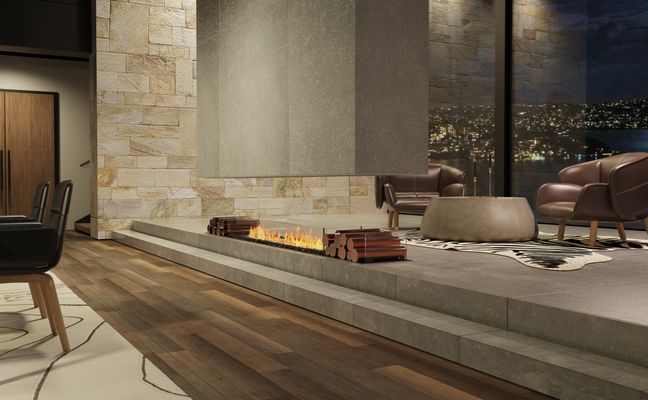 Indoor or outdoor multi room application. With four open sides, view the flame from multiple vantage points.